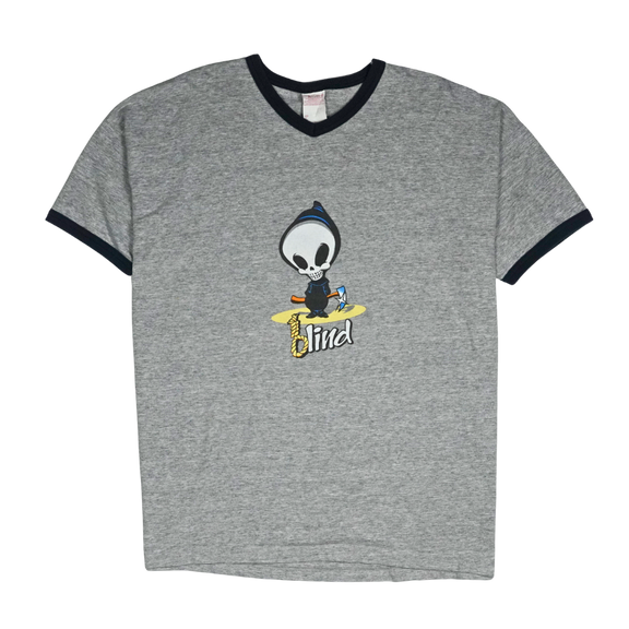 1990s Blind Skateboards Grim Reaper Logo Ringer Tee