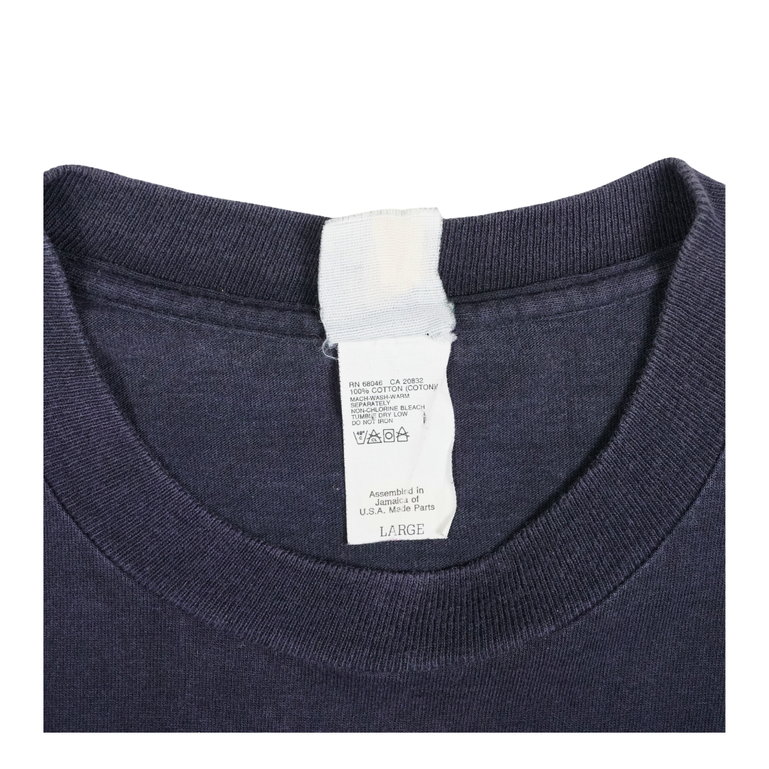 Official NBA and team logos seal the deal, and the tag — stitched into a blank assembled in Jamaica with USA-made parts — confirms its authentic roots in early '90s sportswear. The heavyweight cotton has aged beautifully, with a soft worn-in feel and that perfect drape only true vintage delivers. Whether you collect Magic-era Shaq pieces or just want a tee that screams 1993, this one’s got the muscle and memory built right in.