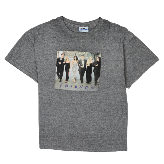 This vintage Friends tee captures the cast in full strut — tuxedos, gowns, wine glasses, and red roses in hand — walking the empty streets of Manhattan like they owned Thursday nights (because they did). It’s a striking image from the show’s later seasons, printed on a soft heather gray USA-made blank with official NBC Experience branding.