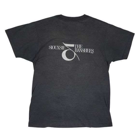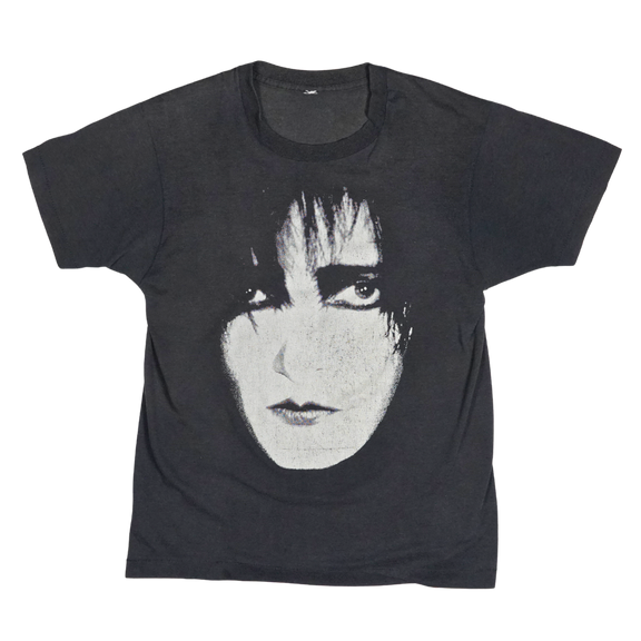 This vintage 1990s Siouxsie and the Banshees tee captures the iconic presence of Siouxsie Sioux with a stark black-and-white face print that dominates the front, radiating the gothic allure that defined post-punk’s dark aesthetic. The back features the band’s name in a bold, minimalist logo design, solidifying its authenticity as an era piece. Printed on a faded black blank with natural wear, this shirt embodies the underground spirit of alternative music in the late 20th century. Essential for collectors, it’s more than apparel—it’s a wearable artifact of goth and post-punk history, channeling Siouxsie’s fearless individuality and the Banshees’ lasting cultural impact.