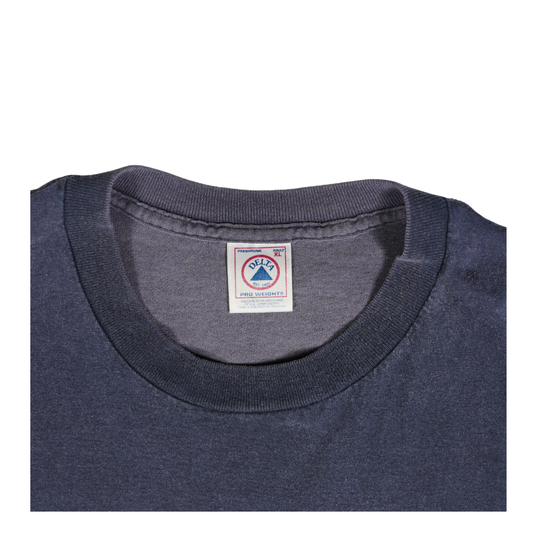 Flip it around and the back lists the full 1997 tour run across the U.S., paired with a dark purple handgun graphic that amplifies the album’s bleak themes. Printed on a Delta Pro Weights blank, the tee carries the weight of the late-90s extreme metal scene — a time when Brutal Truth were redefining grindcore with unrelenting speed and pointed cultural critique. For fans of underground metal and collectors chasing authentic relics of the era, this vintage shirt is as heavy as the riffs it represents.
