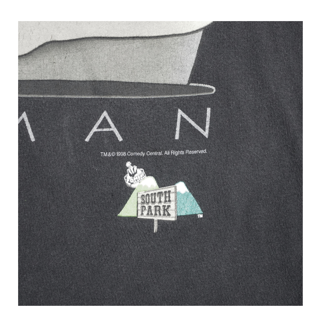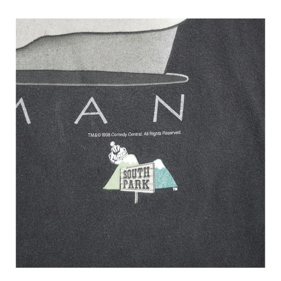 This vintage 1998 South Park tee captures the early days of the animated series with a bold front graphic of Cartman, one of the show’s most iconic characters. Licensed by Comedy Central and printed on a LoGoTel tag, the shirt reflects the cultural moment when South Park first exploded into popularity. The oversized Cartman print and dated copyright make this piece a true collector’s item for fans of late-90s animation and pop culture. A must-have vintage tee that embodies the irreverent humor and cultural impact of the show’s debut era.