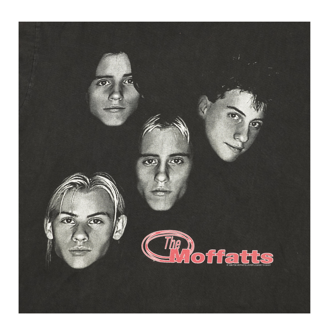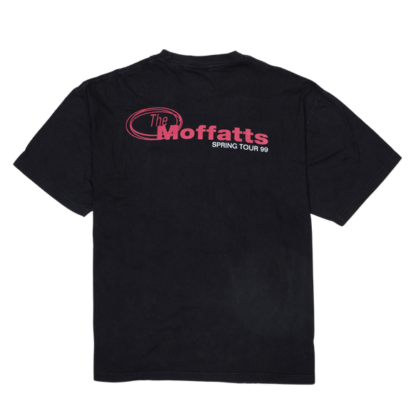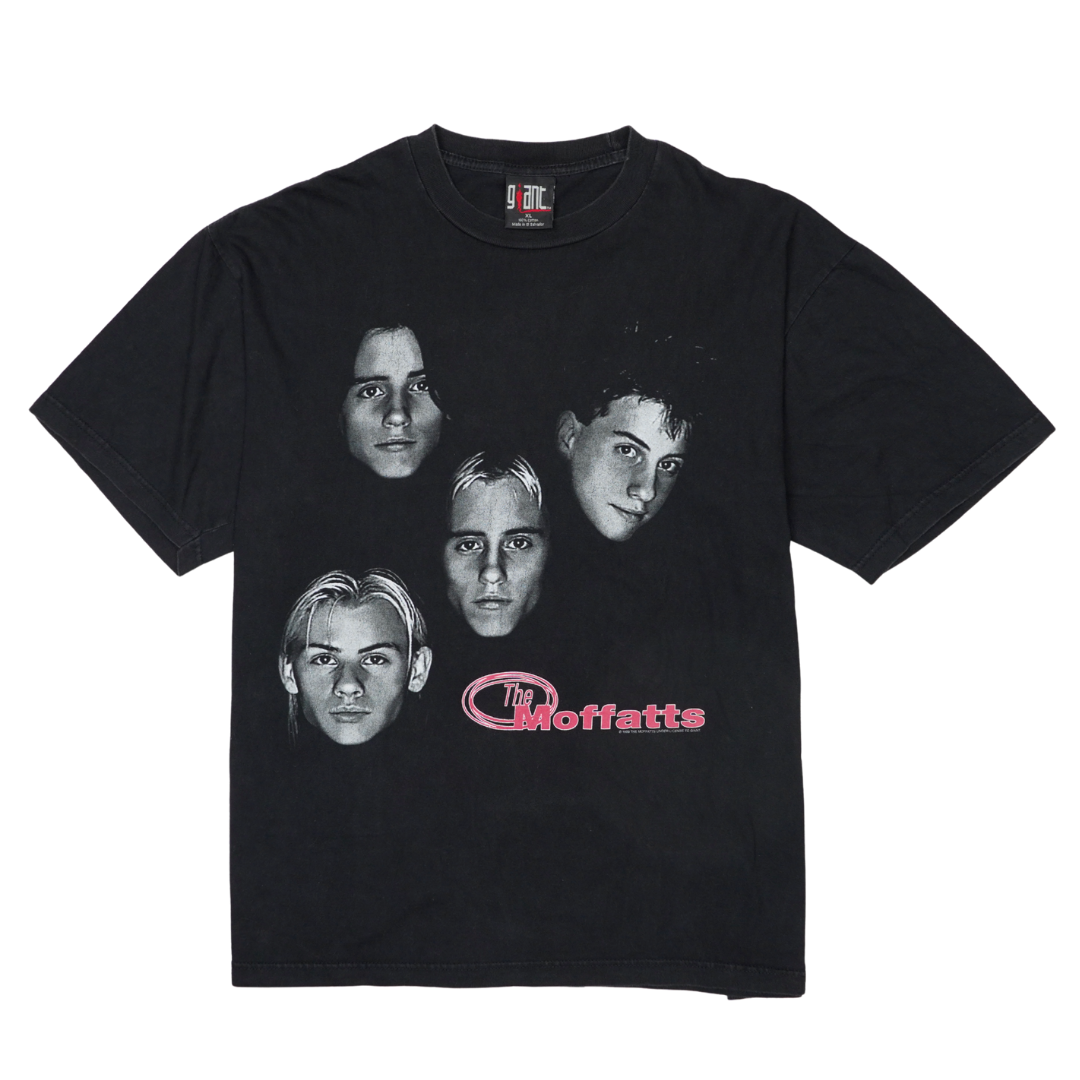 This vintage 1999 The Moffatts tour tee features an iconic black-and-white floating head graphic of all four band members on the front, with a bold "Spring Tour 99" hit on the back. Printed on a Giant tag and licensed to Giant, this shirt captures late-'90s pop culture energy at its peak. The worn-in black cotton adds the perfect lived-in feel, and the graphic is still crisp. A perfect piece for Y2K collectors or fans of underrated '90s boy bands.