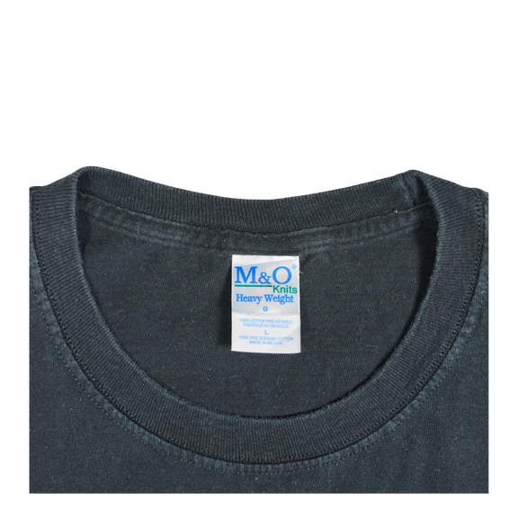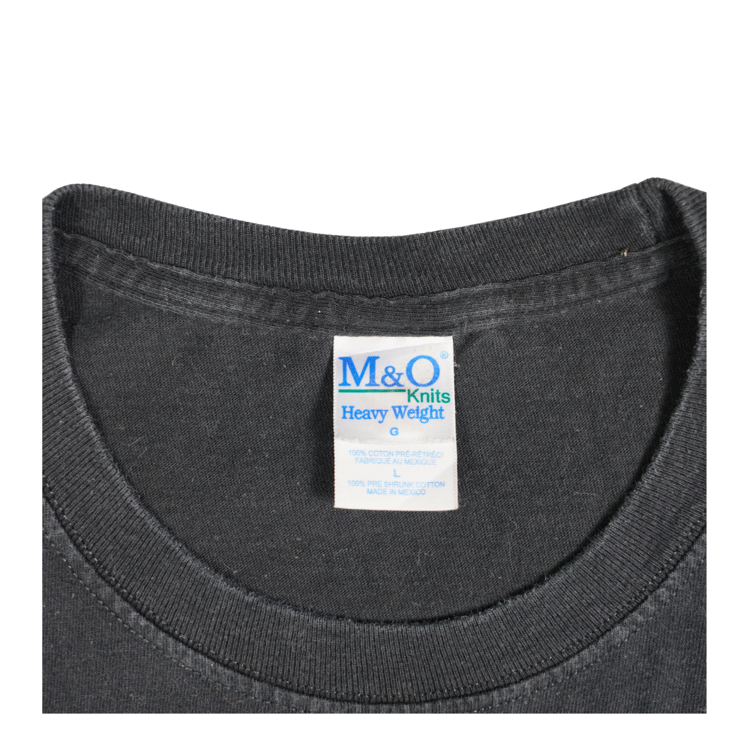 This vintage A Tribe Called Quest tee captures the early 2000s revival of the group’s influence, featuring their iconic neon stick-figure logo in bold yellow and red. Printed on an M&O Knits blank from the 2000s era, it reflects the period when Tribe’s legacy was celebrated by a new generation of hip-hop fans. The design’s playful, Afrocentric-inspired graphics echo the cultural impact of albums like The Low End Theory and Midnight Marauders, while the 2000s production roots it firmly in the post–golden age of rap. For collectors, this vintage piece bridges the line between original 1990s consciousness and the enduring legacy that kept Tribe’s name alive in the new millennium.