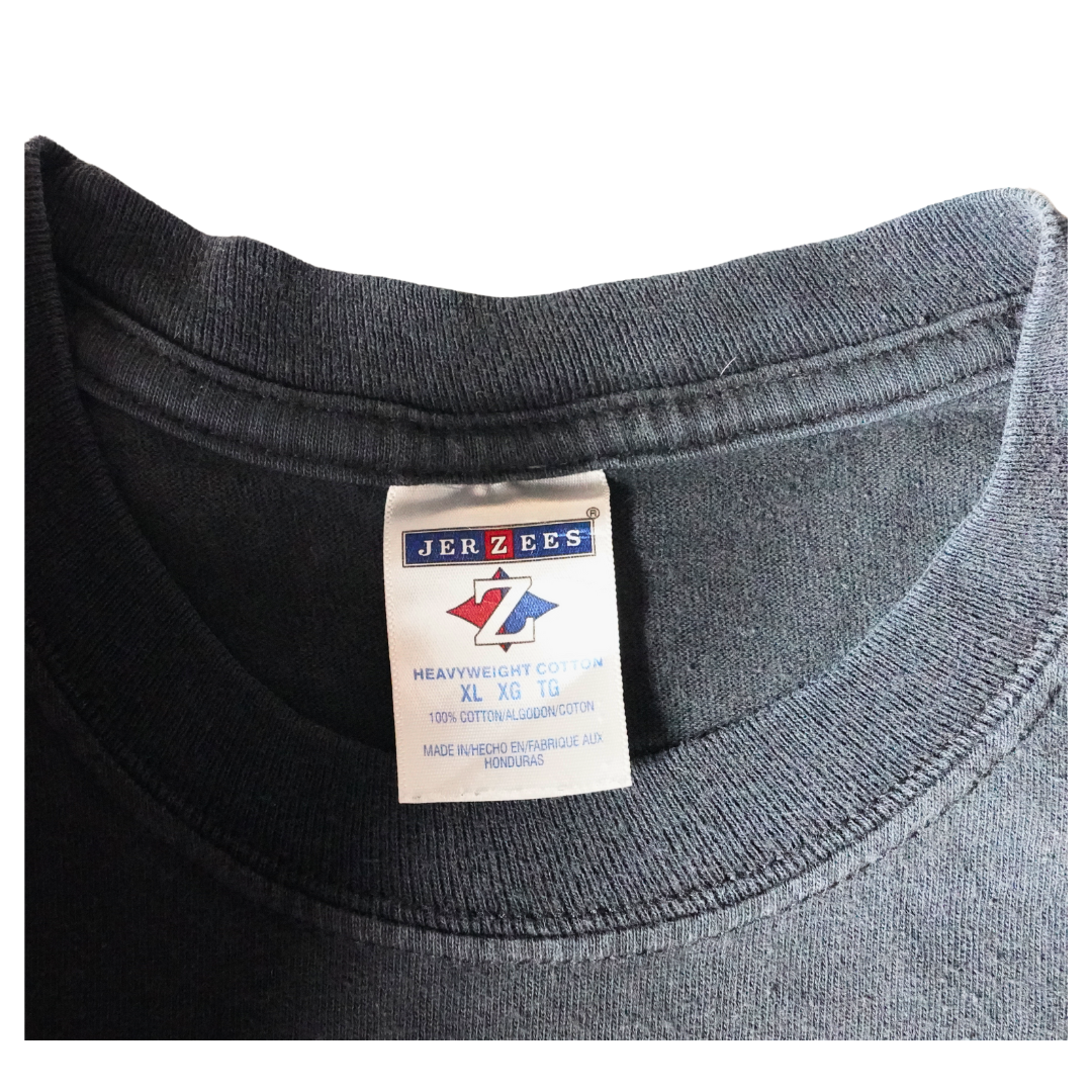 This vintage 2003 Disturbed tee captures the raw, aggressive energy of one of nu-metal’s loudest voices at their peak. Featuring the band’s “The Disturbed Ones” graphic across the front in high-contrast white and red ink with the signature sinister smiley face logo, this shirt is a shoutout to the fans who knew every lyric by heart. The back keeps it clean with a subtle “Disturbed” print just below the collar—perfect for that low-key flex. Printed on a heavyweight Jerzees tag and made in Honduras, this tee is era-authentic Y2K rock merch and has that broken-in feel without sacrificing structure. If you were at Music as a Weapon Tour or blasting “Down with the Sickness” from your burned CD-R, this one's for you.