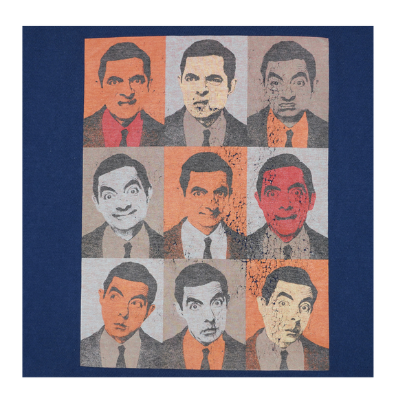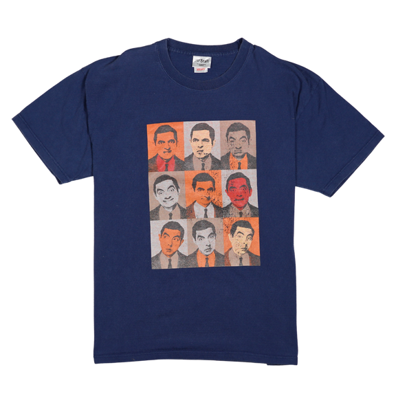 This vintage Mr. Bean tee captures Rowan Atkinson’s cult character in all his awkward, expressive glory — laid out in a 3x3 Warhol-style pop art grid that cycles through his most iconic facial contortions. From confused to mischievous to full-blown chaos, each panel celebrates a different flavor of Bean’s silent-era slapstick madness.