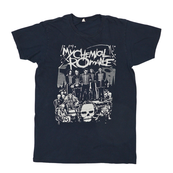 Released during the peak of the 2006 emo explosion, this shirt embodies the band’s concept-heavy aesthetic — a rock opera wrapped in punk angst and funeral pageantry. The cracked ink and sun-faded black give it that worn-in patina collectors crave, and the missing neck tag only adds to the mystery and authenticity.