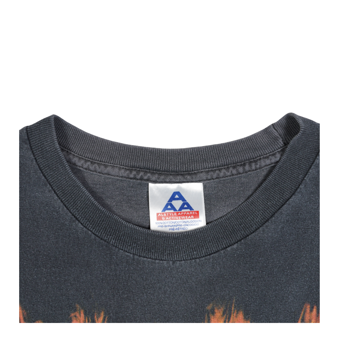 Released as part of an early-2000s licensed run, this shirt was printed on a sturdy Alstyle blank, delivering that thick cotton drape fans know and love. The ©2004 licensing mark confirms its era, making it a collectible bridge between the classic designs of the 80s/90s and the resurgence of reissued band merch in the 2000s. With its bold flames, battle-ready cannon, and undeniable AC/DC energy, this vintage tee salutes the faithful and keeps the legacy blazing.