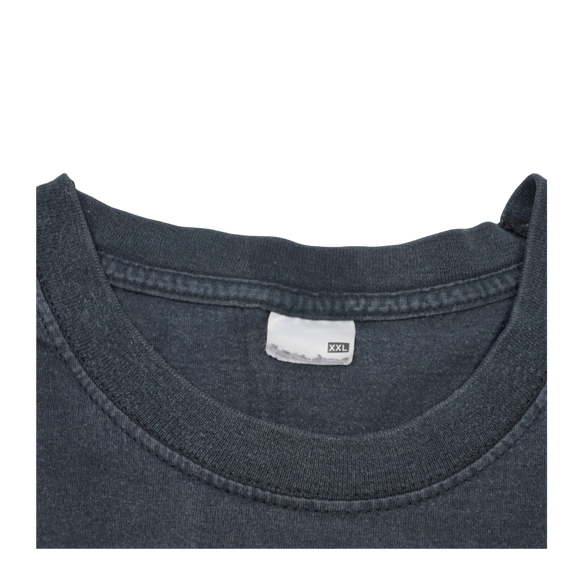 Every bleach streak and worn patch on this tee is a memento from the pit—an echo of crowd surges, circle pits, and pyrotechnics under cloudy UK skies. It’s more than a shirt; it’s a time capsule from a weekend where metalheads from around the world came together in muddy boots and denim vests to celebrate noise, community, and chaos. A must-have for any collector of vintage band tees, this piece bleeds history, attitude, and festival lore.